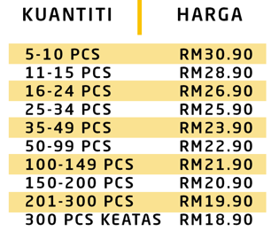 (Saiz standard, boleh diubah mengikut cutting pelanggan)